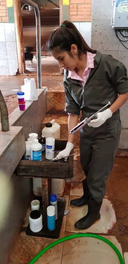 Recibida en la Facultad de Ciencias Veterinarias de la Universidad Nacional de Asuncion, la dra. Stefany Carreras nos cuenta que desde su ingreso a la universidad, participo de varias pasantías en diferentes clínicas veterinarias con pequeños animales, y unas cuantas con grandes animales en granjas y tambos. Si bien fueron buenas experiencias, su vocación tuvo tendencia al trabajo de campo y lo comprobo al realizar su trabajo de tesis de grado en la Ciudad de Juan Elogio Estigarribia en el area de producción láctea.